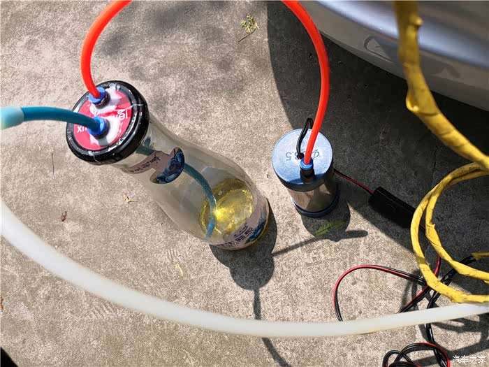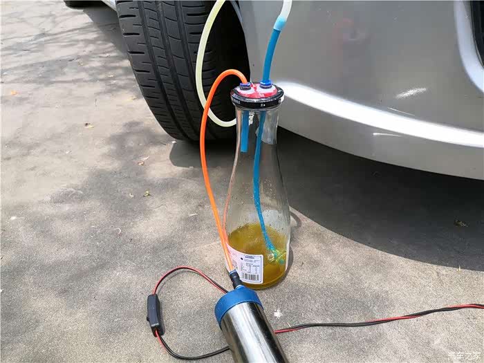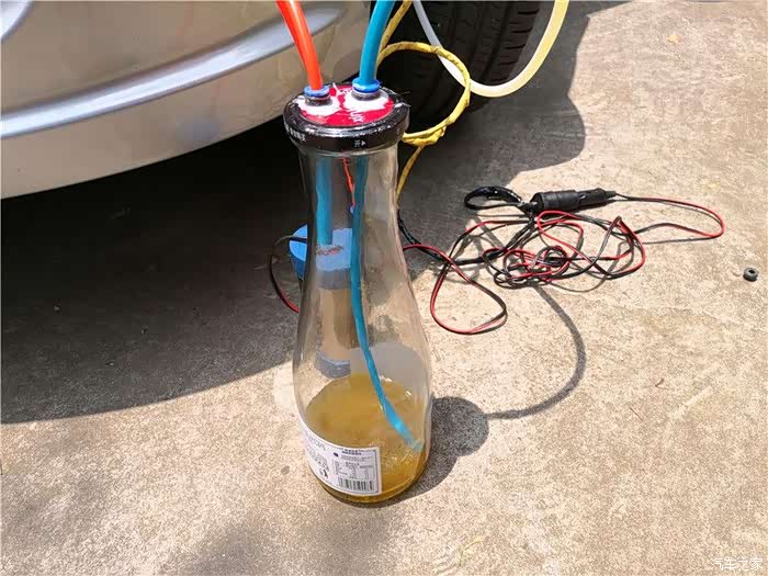 从瓶子中可以直观看到抽出来的刹车油有多少。