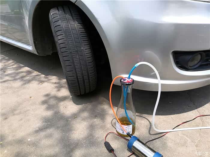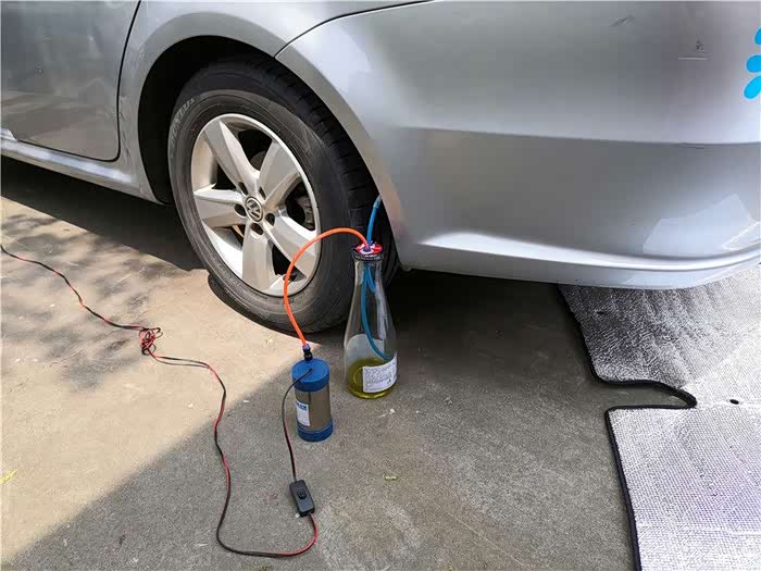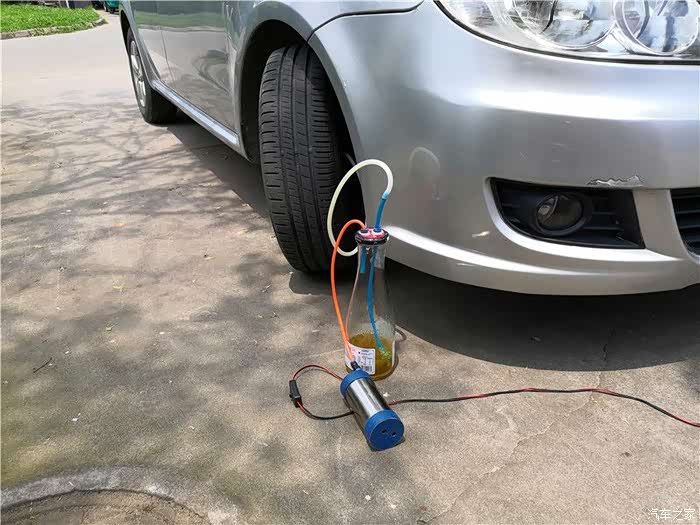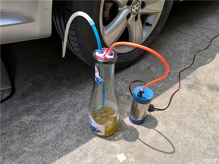 负压设备,硅胶管抽油,从分泵出油口吸出油,原理就是这样,很简单。