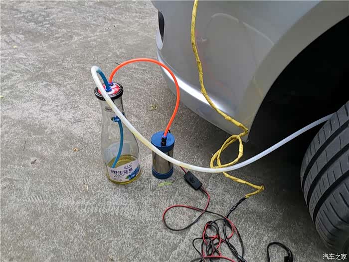2个后轮要多抽点,因为刹车油管路长,所以适当多抽点,当出来的刹车油干净清澈时,说明新油到位,旧油已然更换完毕。