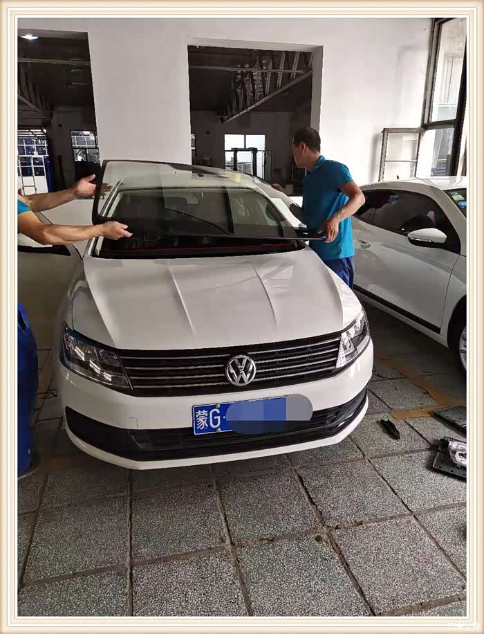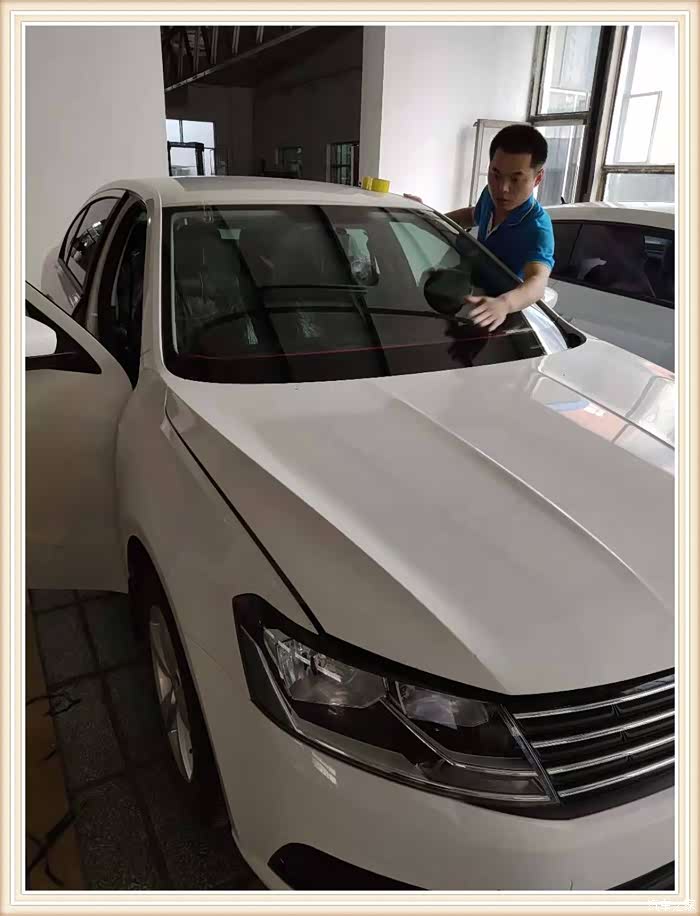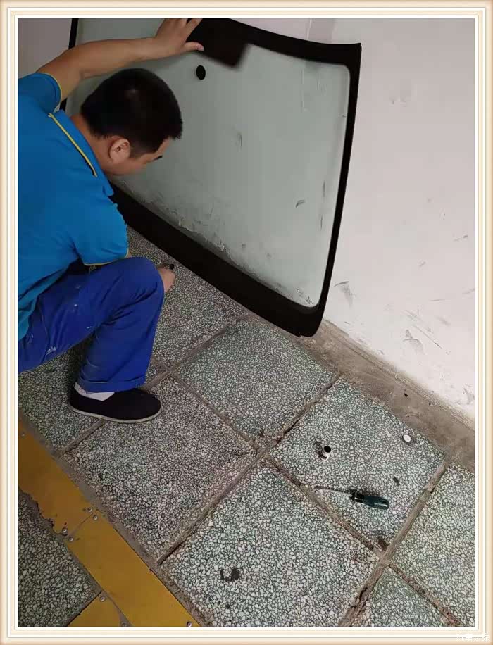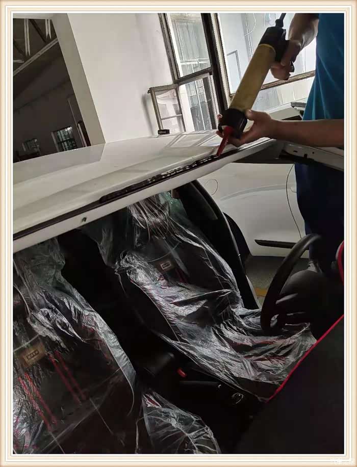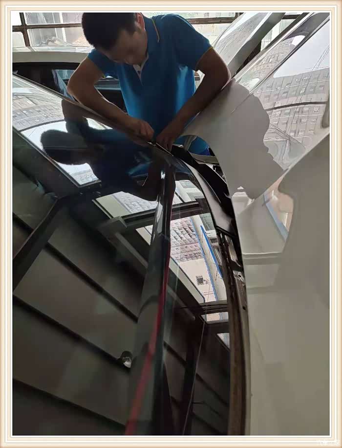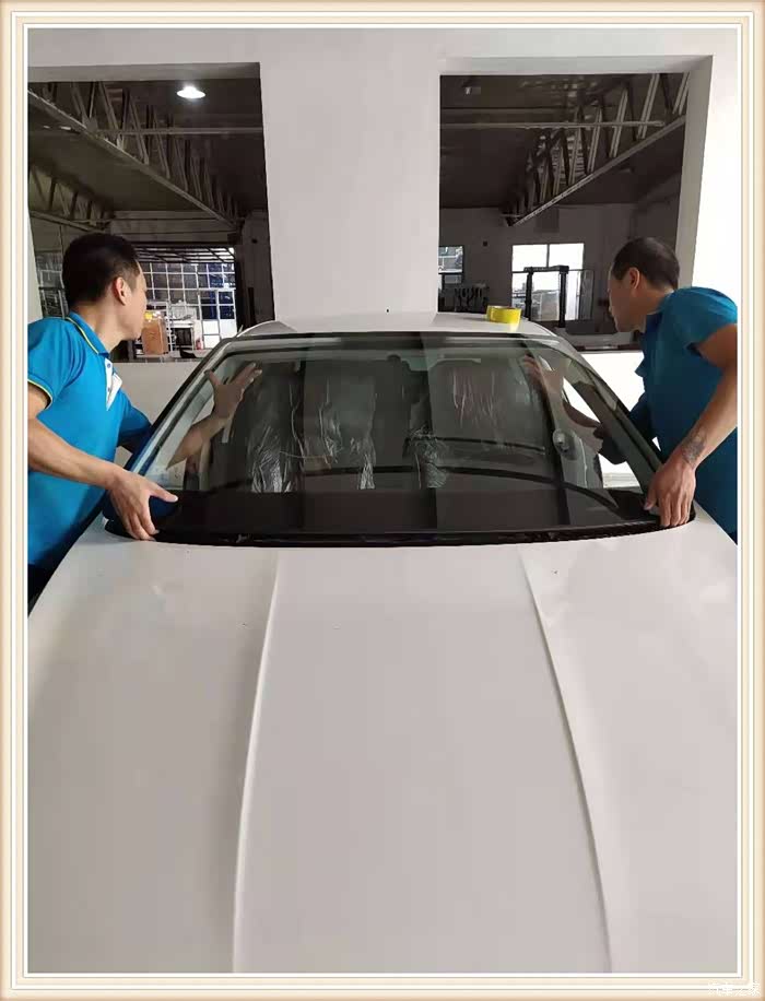接下来就可以安装风挡玻璃了,这时需要两个人