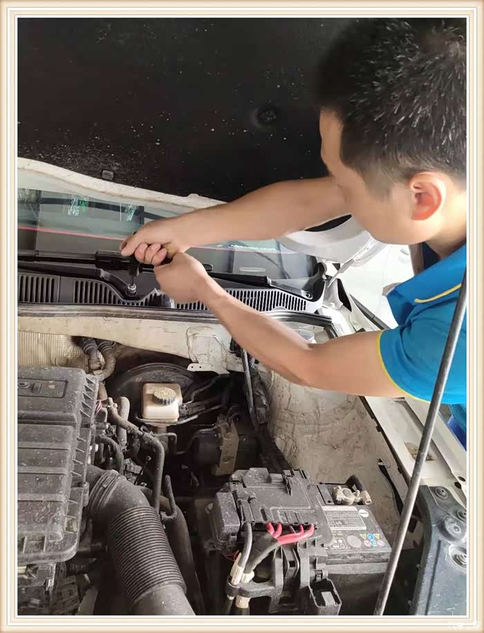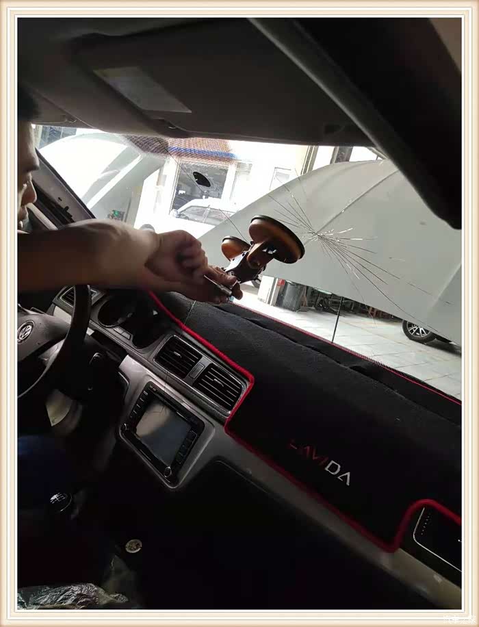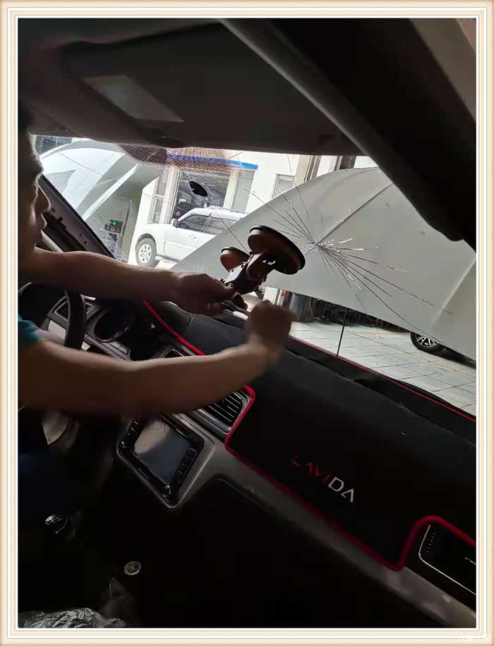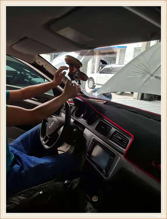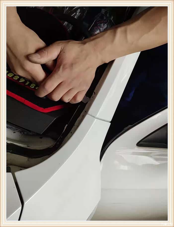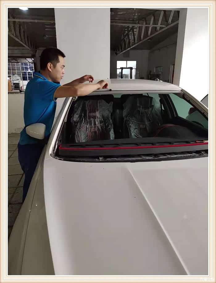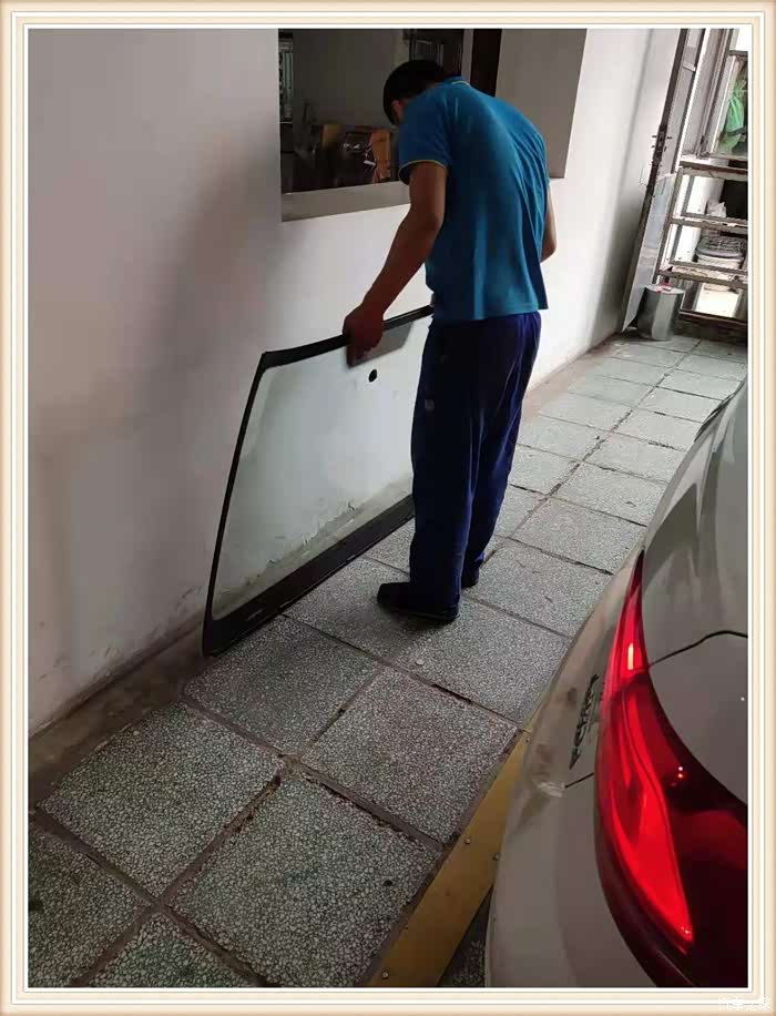 安装完成,小师傅在用手进行拍打,确保玻璃与车身之间严实合缝!