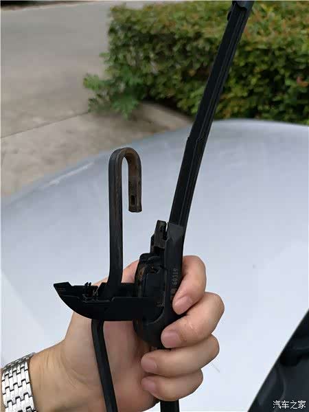 首先掰起雨刮臂,准备拆原来的雨刮。