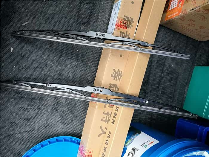 另外一个如法炮制,一对雨刮安装完毕,看起来有骨也不是那么难看嘛,我觉得也很好啊