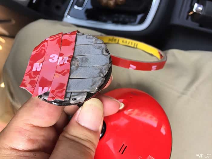 粘上去用手晃动晃动,很牢固,那个底盘的红色3M包边与记录仪的红色也是挺搭配的,是不是有点歪打正着哈。