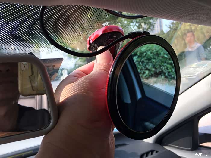 找好位置,用力粘到前档玻璃上。