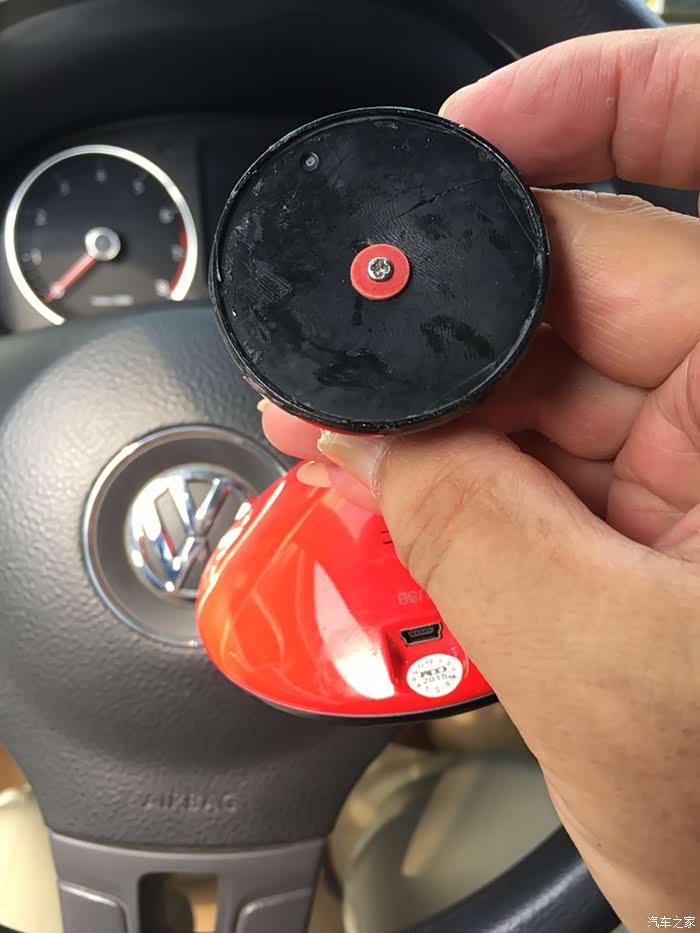 问题来了,车上的记录仪怎么拿下来了?因为它的“腿骨折”了。前二天调整摄像头角度时,用力过猛,把它的腿下面的底盘掰断了。下面我让你看看伤情。