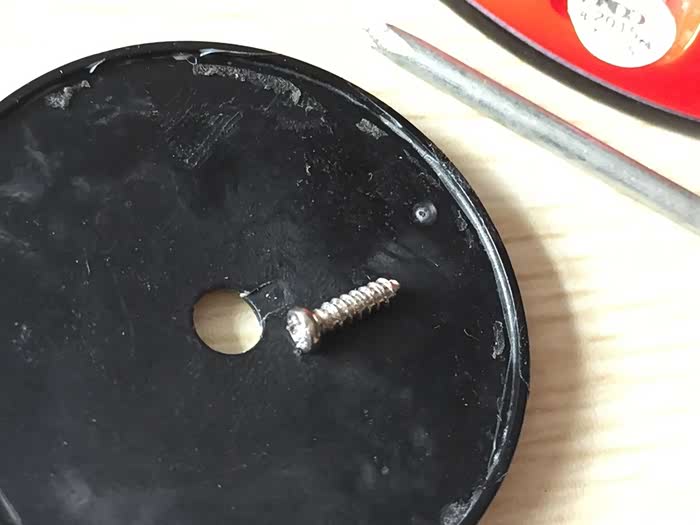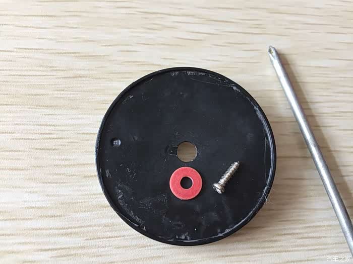 断落下来的底盘洞孔比它大很多,如果要用这个螺丝把底盘拧上去,必须有一个更小的垫片才行。