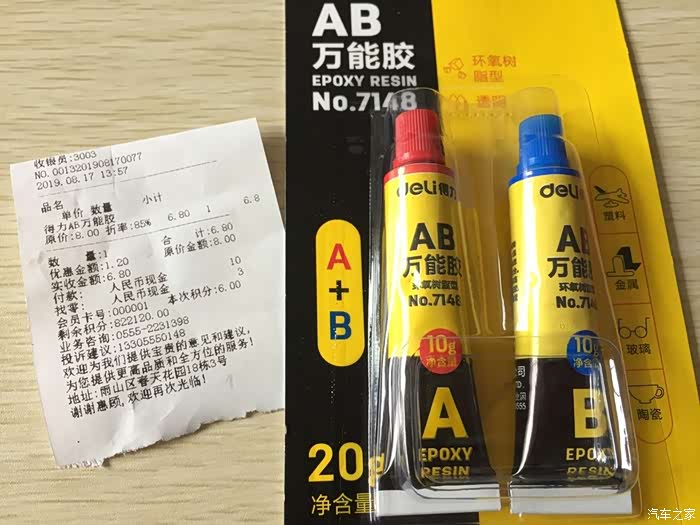 于是又顶着大太阳复出,花了6.8元买回AB胶。