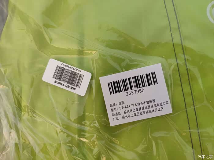 汽车之家的帐篷 重量3.39公斤,重量大