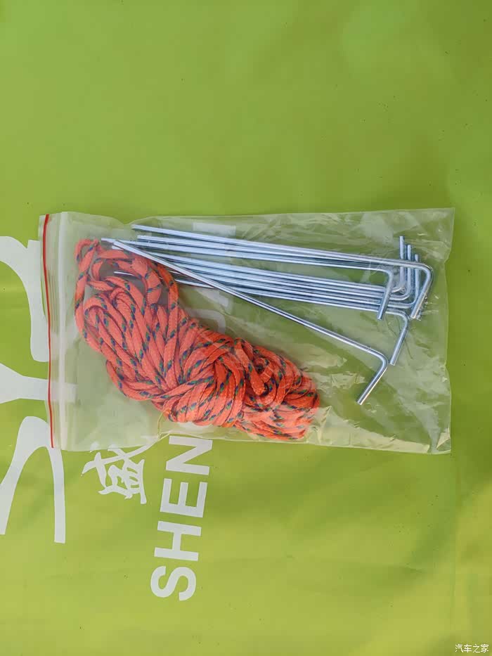 地钉和防风绳,可以有效的固定帐篷,防止大风