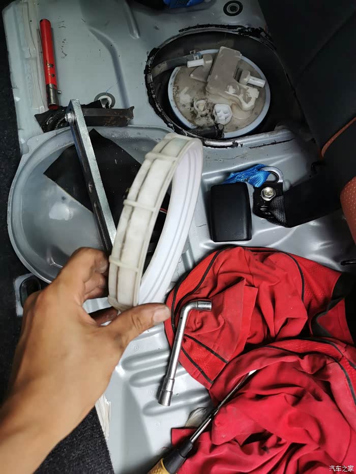 两年多了,马上80000km,寻思换滤芯挺久了。之前也查过维修手册,只有汽油泵的进口滤网,没有单独的汽油格,今天刚好早下班,开动