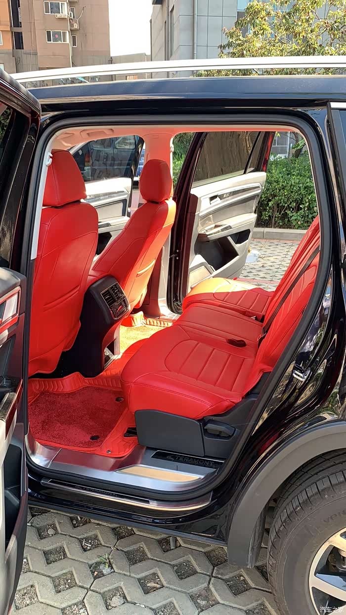 逛汽配城里面的一家做脚垫,座椅套的...和老板交涉后,得知这款增成Nappa皮可以定制途昂,要了5座的,要价2600,讲到2300成交.因为后面两座基本都盖倒,就要5座好了.