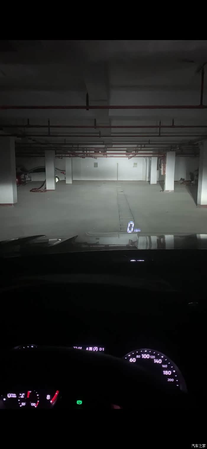 最后开车远距离再微调(感觉已经达到正常开车安全距离)!还有一点就是一次性调好之后再关闭点火,重新打开,不用踩刹车启动发动机,直接按一下一键启动就行了,调好这样重启一次大灯再微调,最好重复两三次,远距离效果下图,有时间再去高速上拍两张图回来补上!