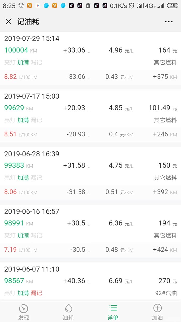 大半箱油366公里,今天又趁着油价还没涨,加满油箱,33升,合到8.8个油,油价4.85.一公里0.43元,上车就开空调