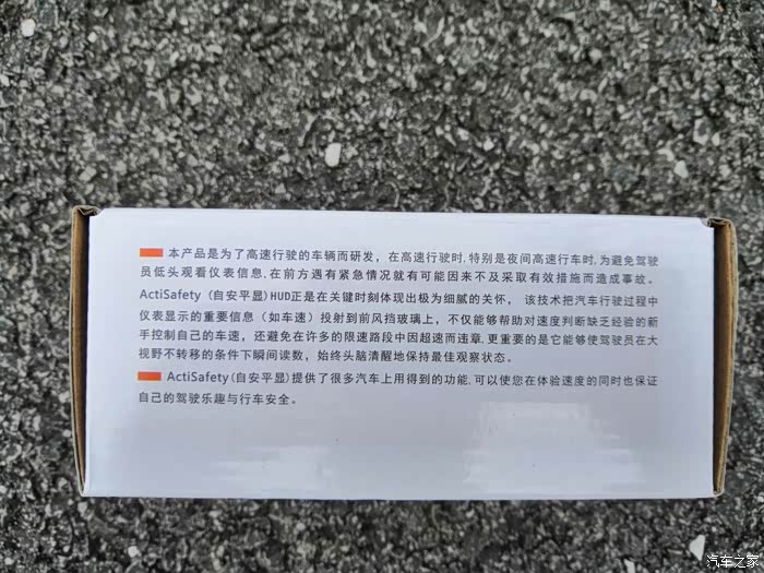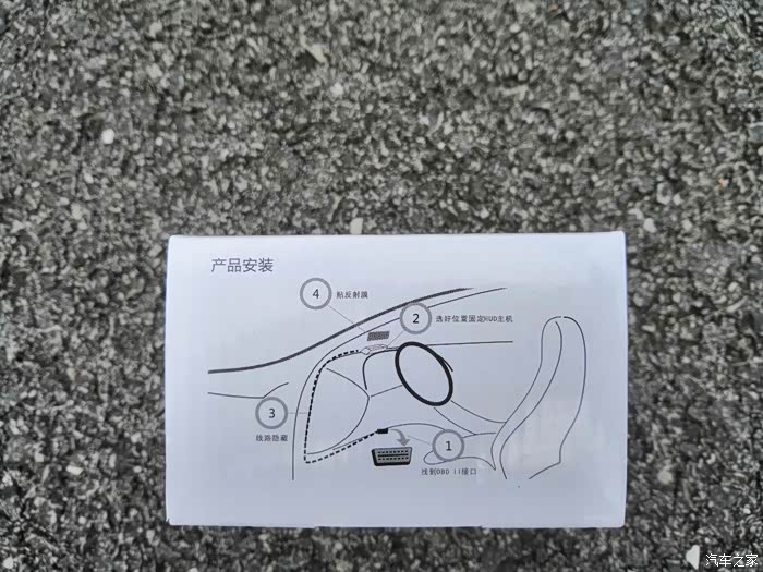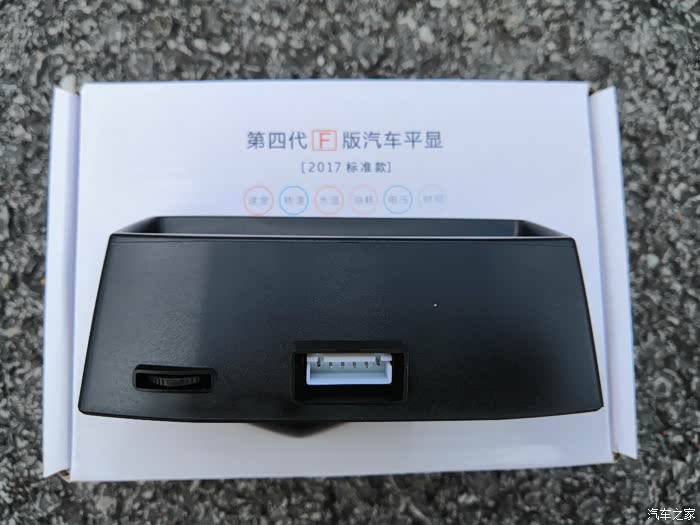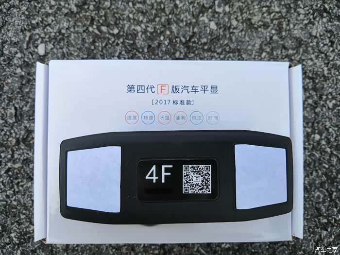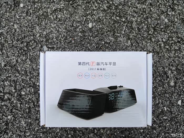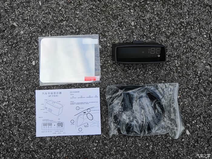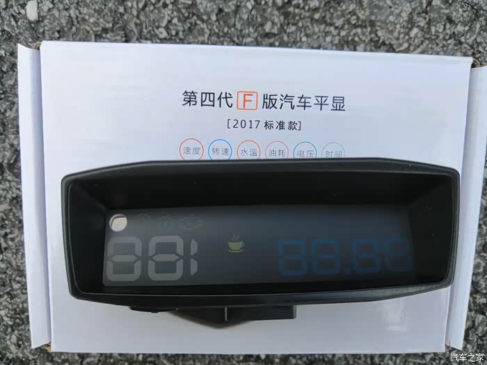 先简单介绍一下这款卡斯兰4F抬头显示器,它主要由一个主机、一条OBD线、一片反光贴和说明书组成,相当简单,功能也很基础,有转速、水温、行驶时间和电压四种,摆放位置看个人喜好和顺眼程度,自行设置,显示内容可以通过前方的拨轮进行调节,太深的功能个人感觉不是很有必要,简单就好。这款抬头显示器还带有光线感应功能,可以根据当前车辆所处环境自动调节显示亮度。