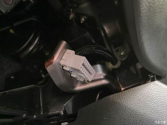 首先要找到车辆的OBD接口,本田缤智的在方向盘下方,油门踏板的上面一点