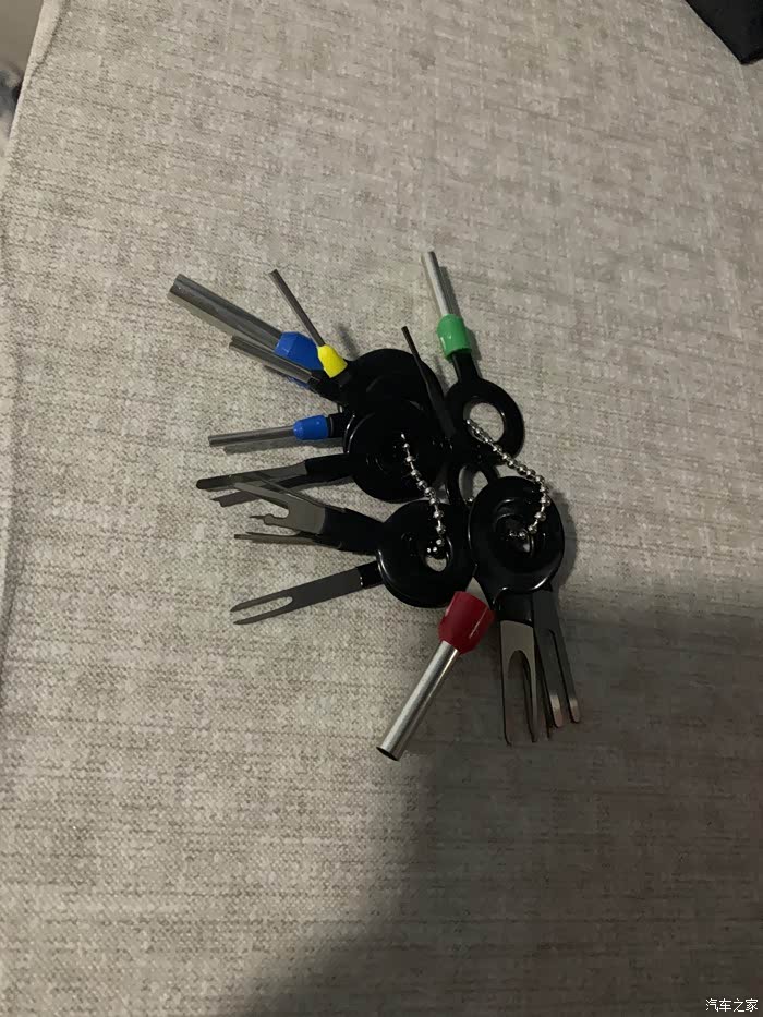 拆端子。因为有这个头导致线抽不出去。需要用退针器把端子抽出去才能正常穿线。退的时候一定记住线序