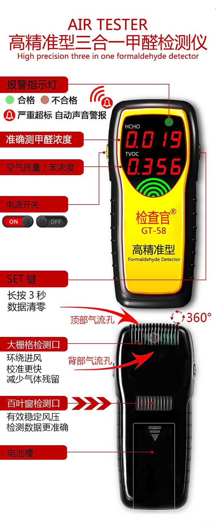 5.有提醒功能,当甲醛超标的时候,机器会发出警报声,提醒使用者。