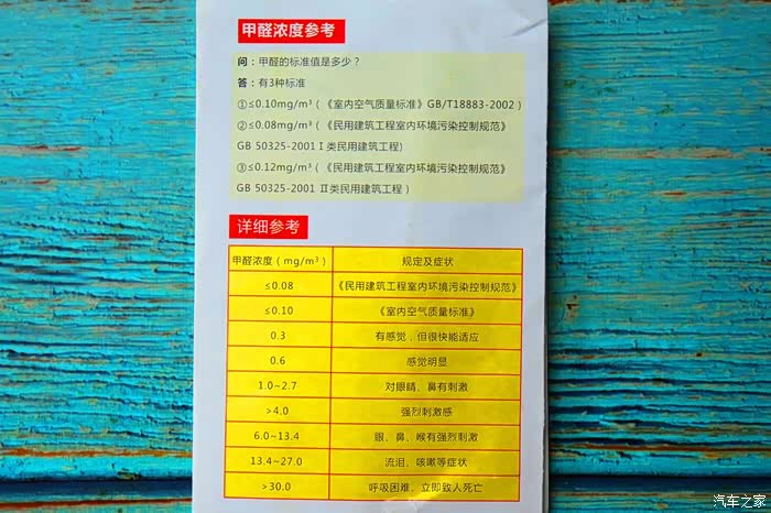 甲醛浓度参考对照表