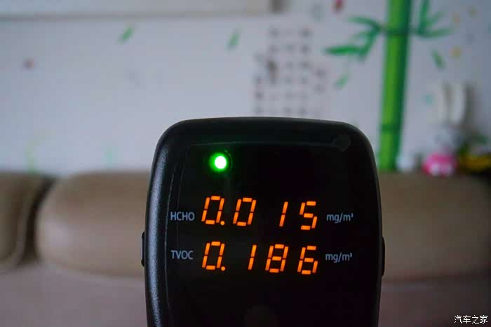 客厅沙发旁边,显示甲醛是0.015