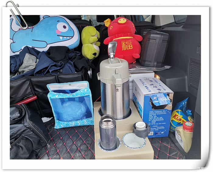 后备厢有点乱,汽车之家给的小玩具、工具箱,没时间整理