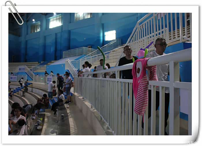 待小伙费了半天劲吹起来,小丑从包里拿出一个打气筒,两下就吹起来了,真够坏的,逗的大家都哈哈大笑起来