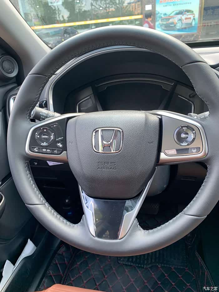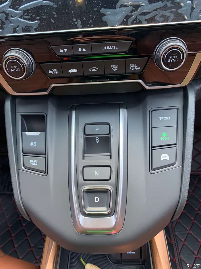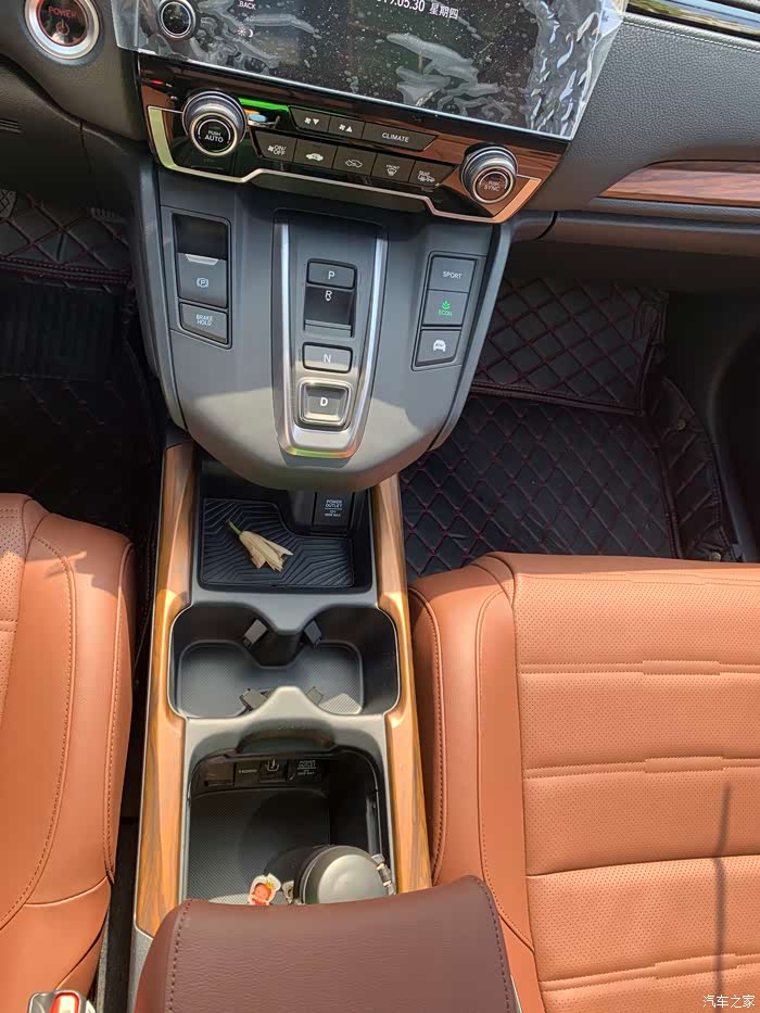 CRV的内饰跟老款比区别并不大,因为我的车是混动版本的,所以变成了电子换挡按键,车内的档次提升了一些,比汽油版的更高级,也更讨人喜欢。