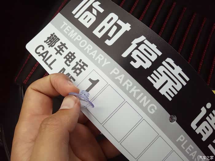 2、这款停车牌设计非常好,三部分组成,留有吸盘孔洞,非常方便就能自行安装