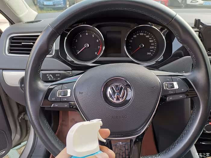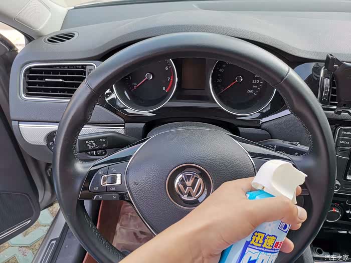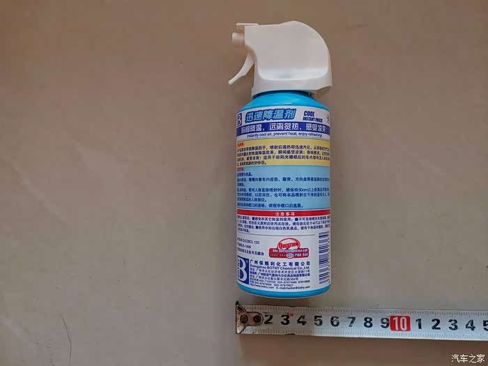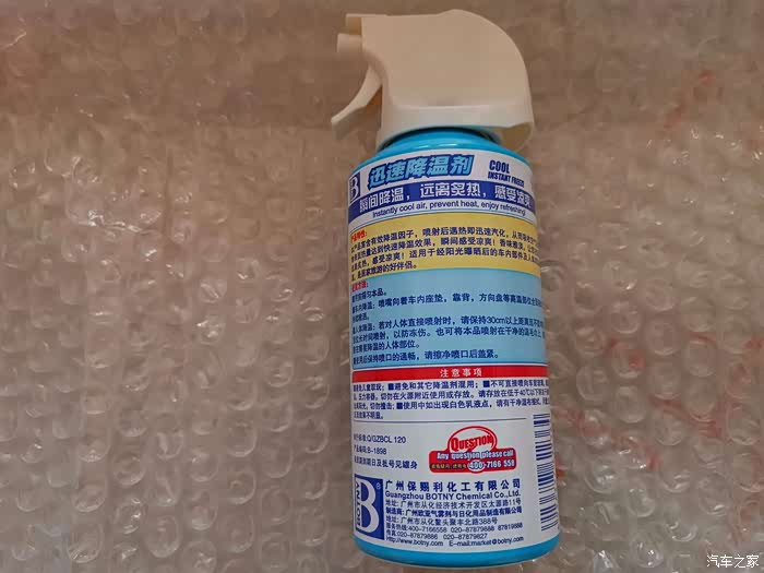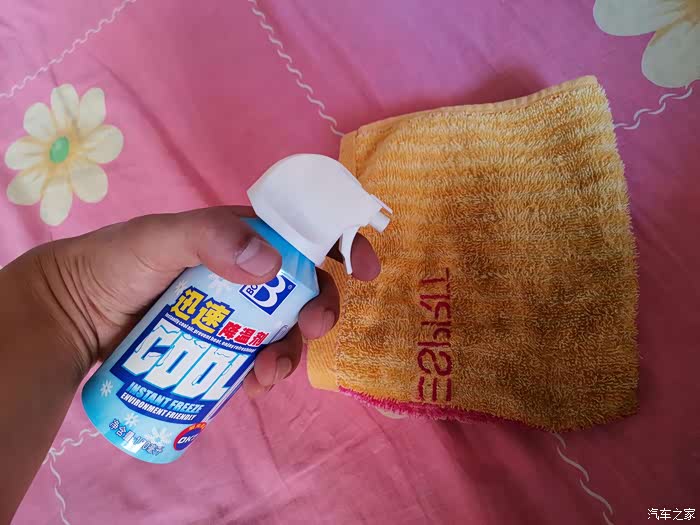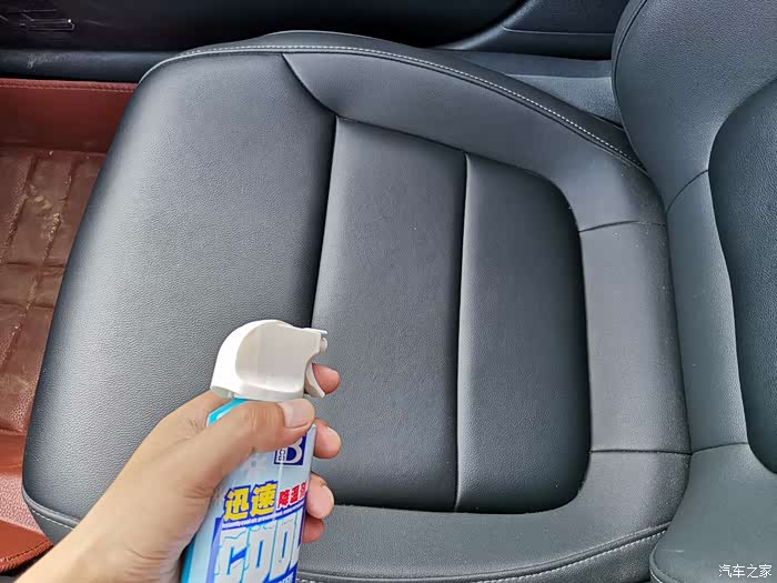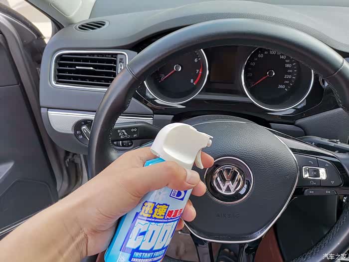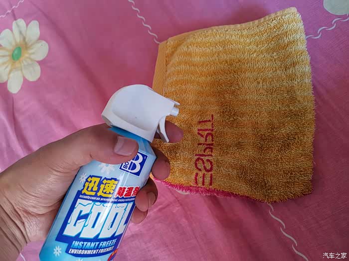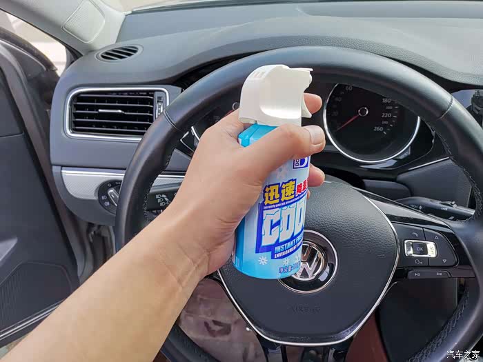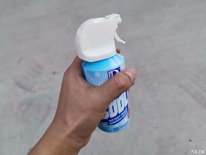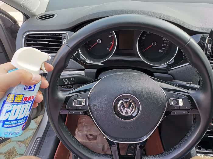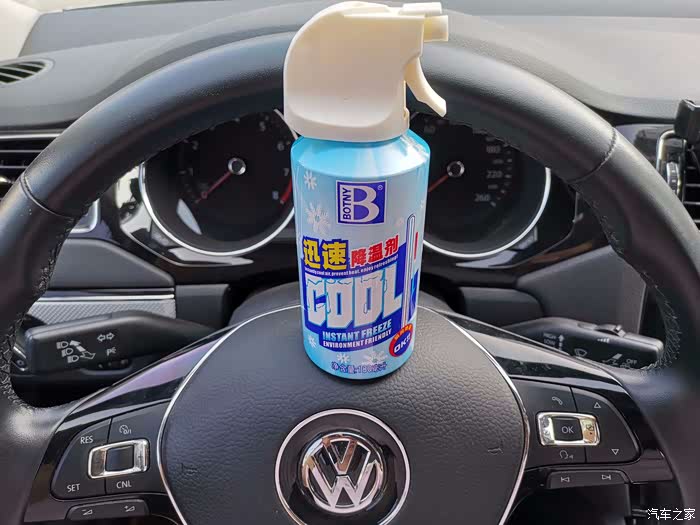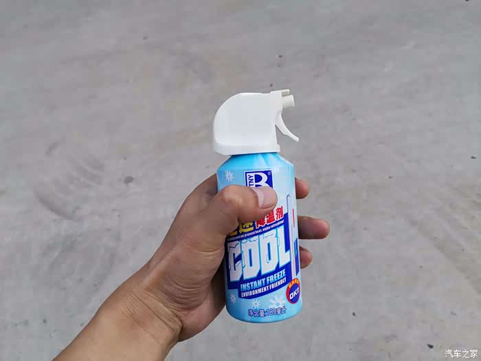 下边再喷喷。等了几秒,感觉方向盘明显不热了,很清爽。再摸摸其他未喷降温剂的部位,依然烫手。