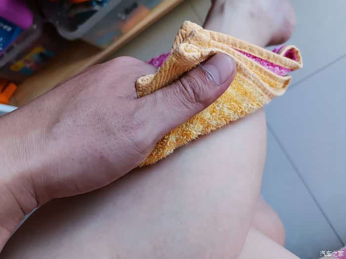 安全起见,没有直接对着皮肤喷,喷在毛巾上,然后敷在腿上试一试。