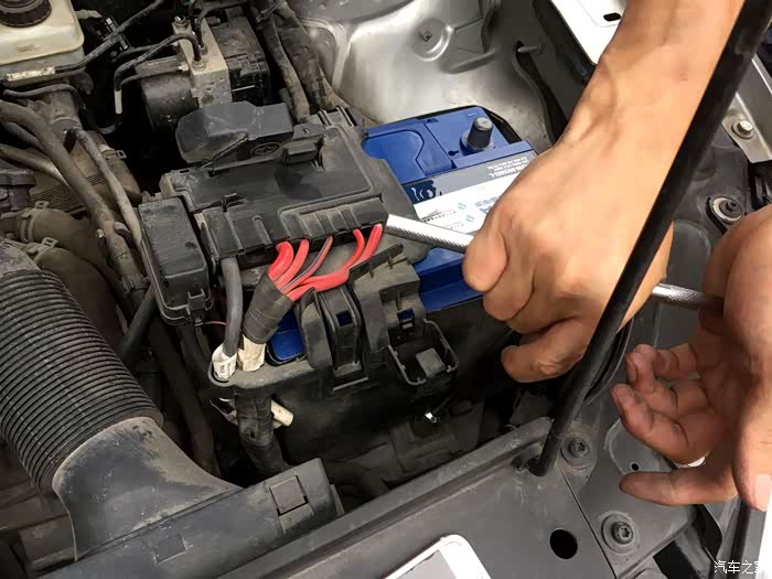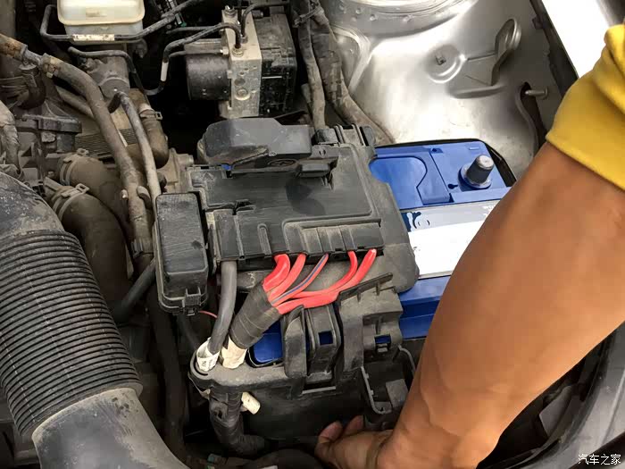 等我点火后,师傅再拆掉备用电瓶,这样原车的信息不会丢失,省去了重新再设定的麻烦和时间。