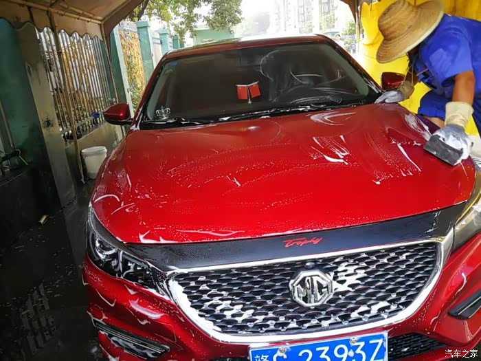终于洗好了,一开始里面内饰我自己用了湿毛巾擦了一会儿,有点水滴进去,我把车门全部打开,晾一晾。顺便给他再来几张帅照。