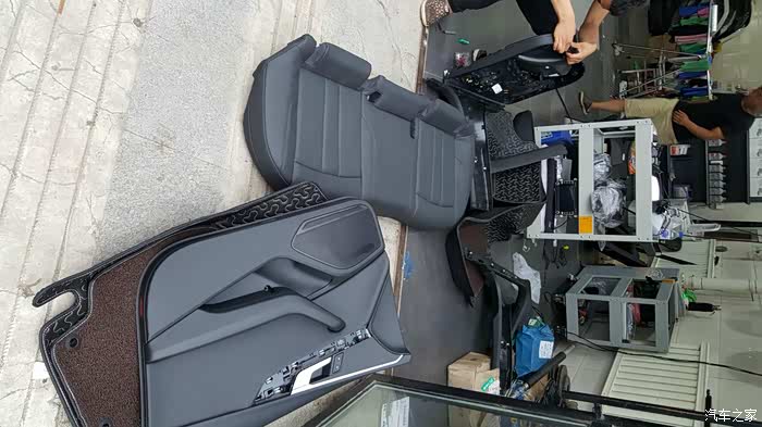 拆下来的座椅和门板。远处的门板正在被手术。门灯打孔。