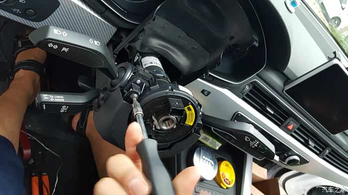 拆掉方向盘和组合开关。