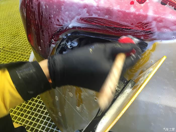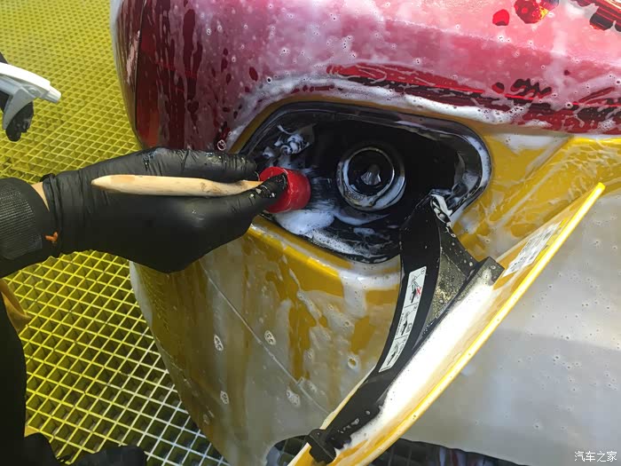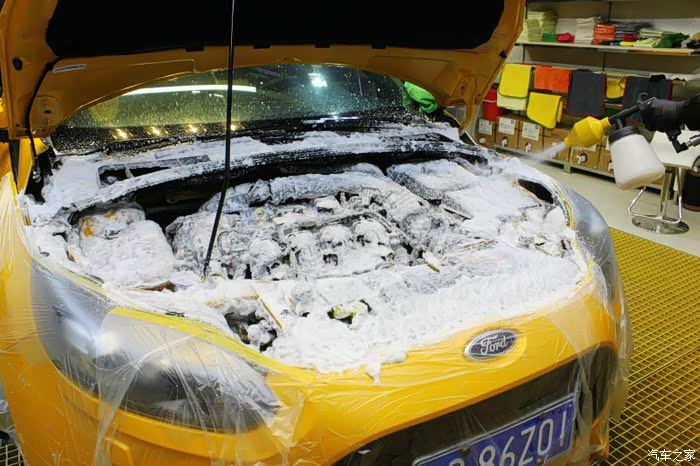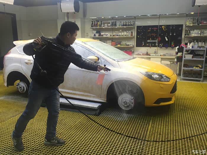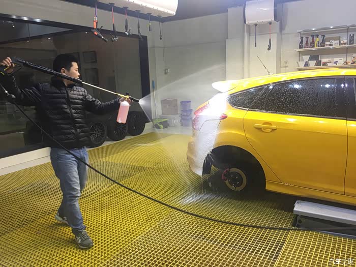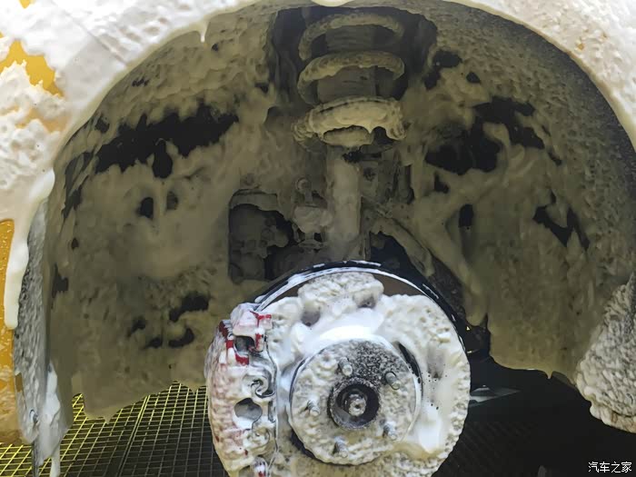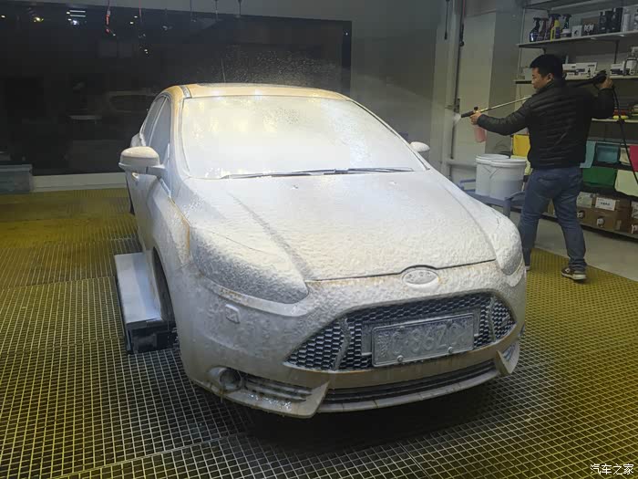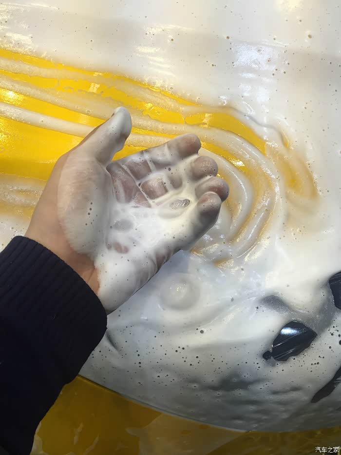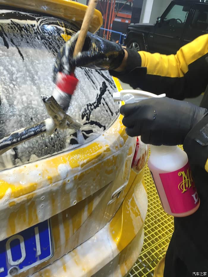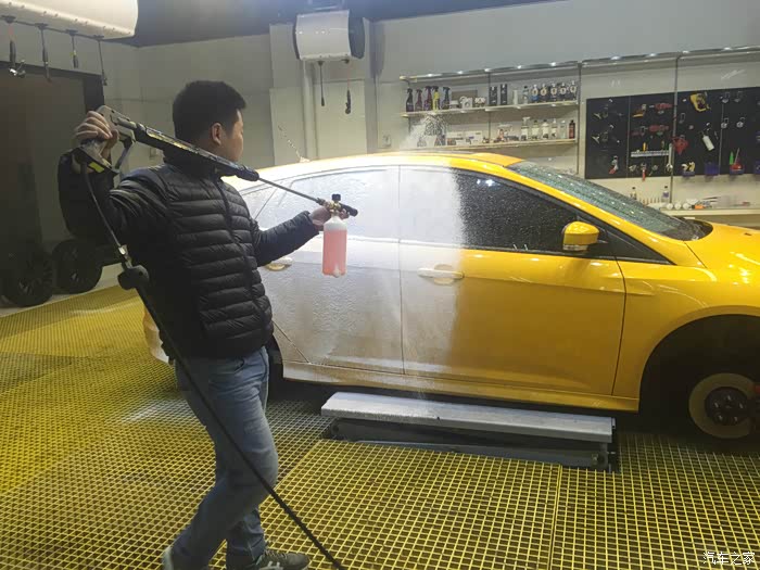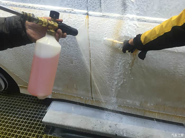 先打泡沫,传说中的预洗。先让泡沫自然脱落,带走细微尘土。以免洗车时造成漆面划伤