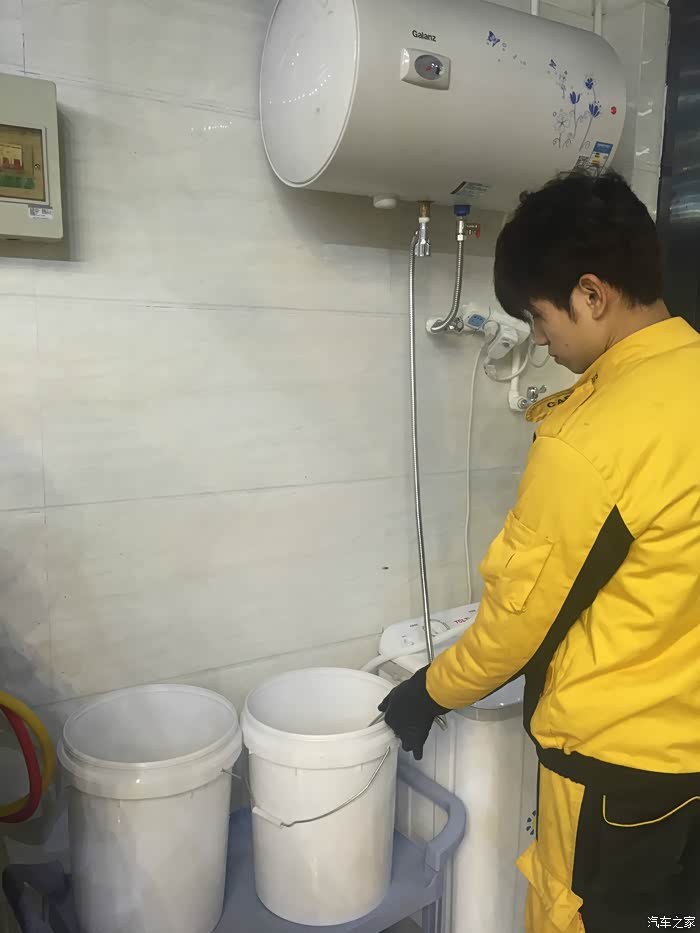 还要用热水,师傅说这是净化水再加温。不会留下水渍。洗车原来这么难