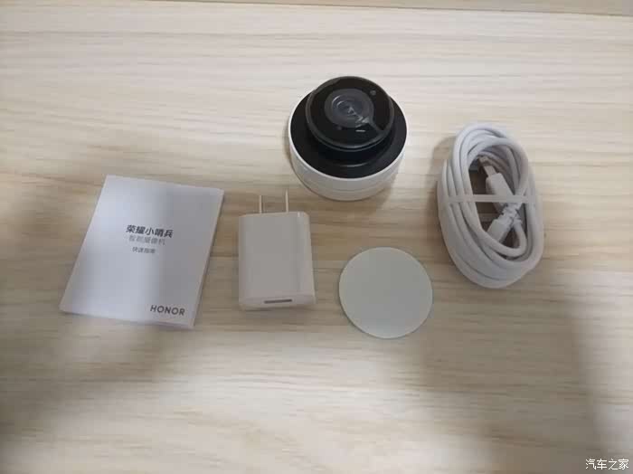全部物品分别是,摄相机本身,一个电源适配器,一个大约两米长的电源线,一个双面胶,和一个说明书。