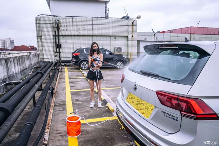 接着用喷壶把混合好的洗车水蜡喷到车漆上,相当于给途观L PHEV上肥皂。