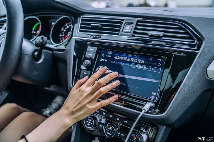 内饰的话也是三块,途观的8英寸触控液晶中控,虽然触感很好,显示内容也很多,不过大屏实在太容易招灰了。
