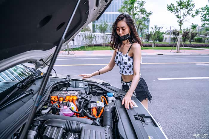 听说最近都喜欢这个角度拍照,秀秀发动机和媳妇。橙色的线是电机的高压线,平时不要用手去碰,最好是戴橡胶手套,或者交给维修工人来处理。