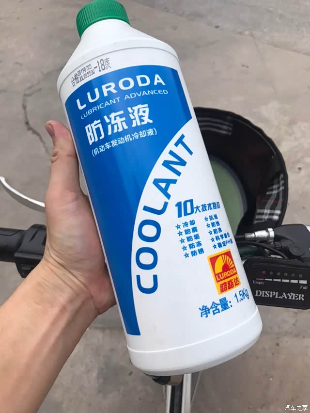 换完了忘记买防冻液了。。。。缺水状态,不开车子,骑电驴去找个店买一瓶回来!
