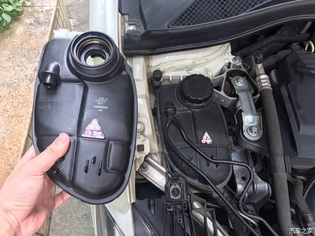 入正题最近小b一直提示水箱水不够加水。打开机盖发现副水壶底下漏了。上网一查通病有不少人都这样。去4店里换比较贵我车子13年的10多万公里了 没大啥问题都不去4店了,心血来潮 自己动手。某宝台湾水壶买回来。动手开干!
