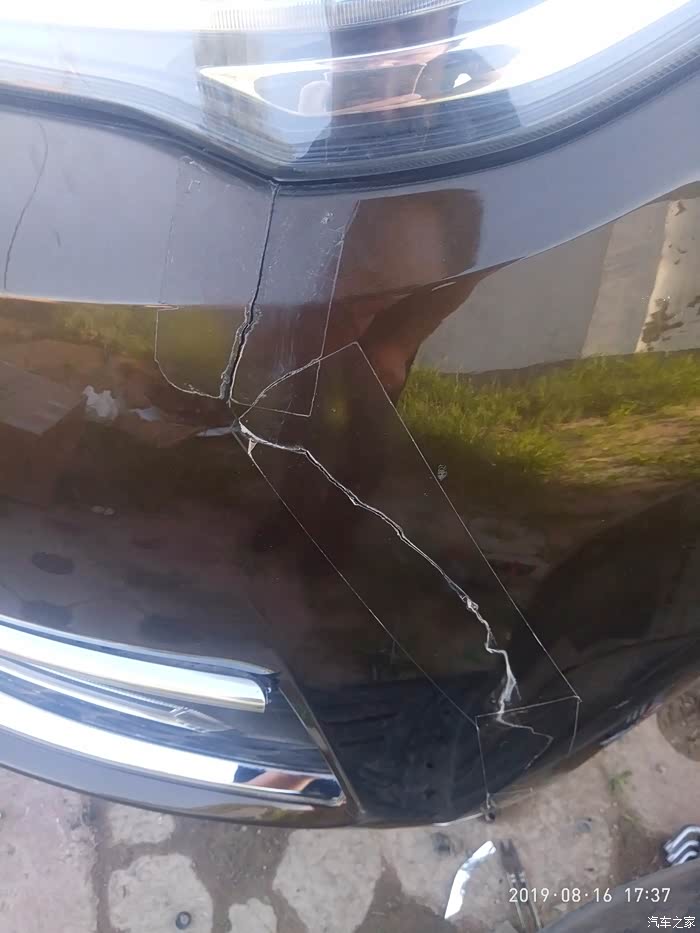 在车位内停车,被小区内中年妇女四轮电动车倒车时加速倒车躺枪,当时目测情况左前大灯两个支架断裂,灯罩外观完好,大灯下面前保险杠裂开一尺长的缝隙,保险好和左前翼子板接触的地方也断裂,但没有完全断开