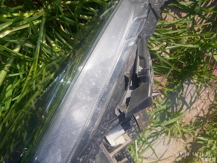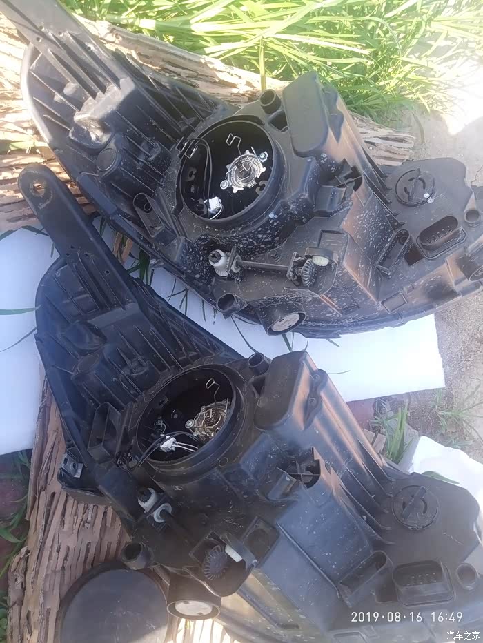 由于目测下面的两个固定螺丝已断裂,拆下大灯正面的两个固定螺丝后轻轻扒开保险杠就可以把大灯拿下来了