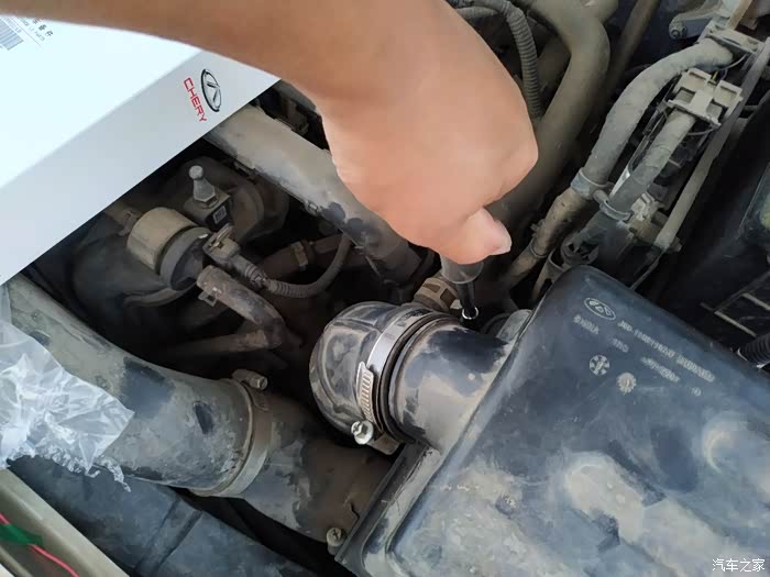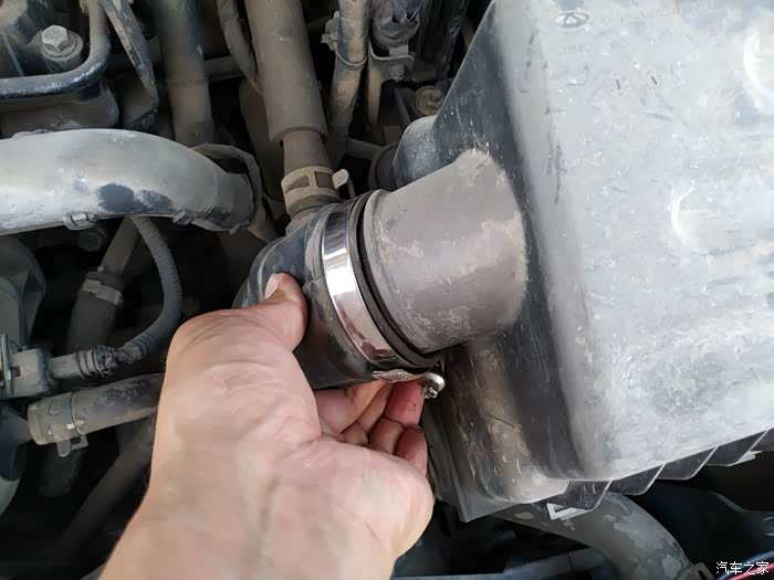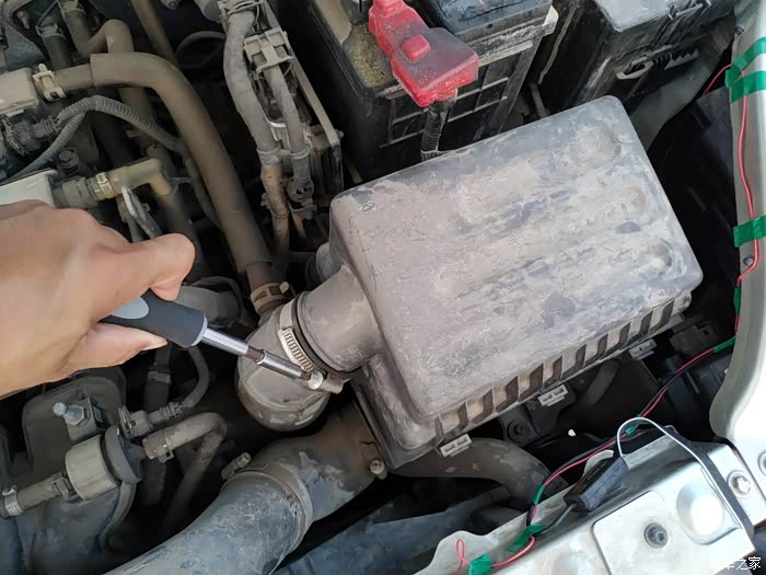首先是用十字螺丝刀,把空气滤芯盒子的出风口连接处拧开。
