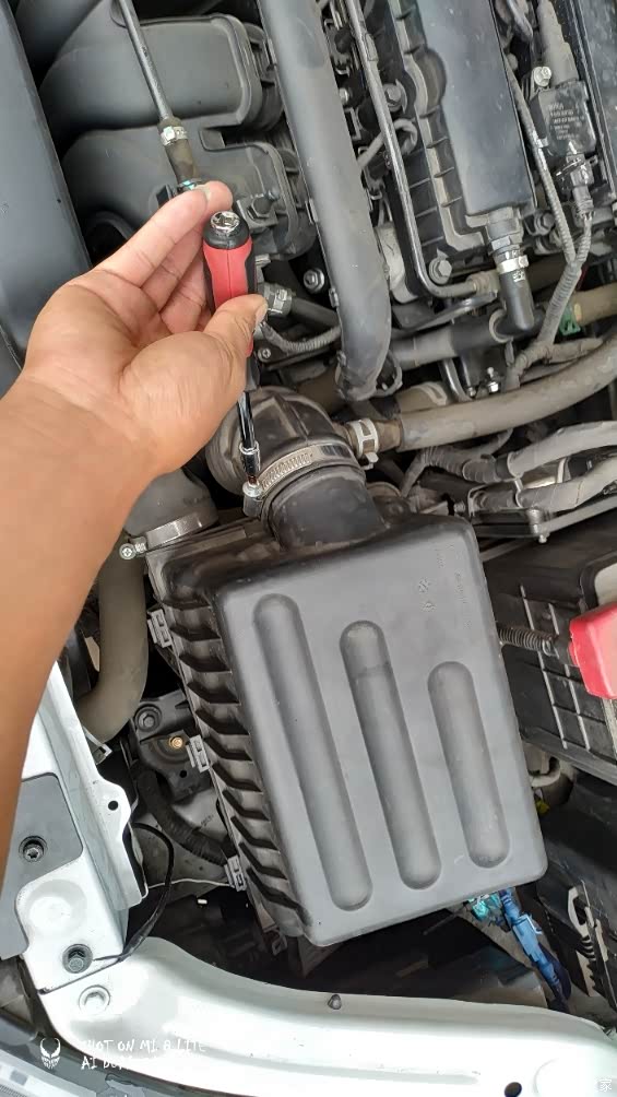 拆下空滤底座,拧下3条螺丝,1个螺母,剪断2根扎带,使劲往上抬空滤底座,就可以取下,不用担心拉坏,底座下边是用橡胶卡扣固定,大力出奇迹