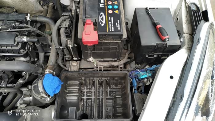 接下来要拆下电瓶。断开电瓶正负极,如图拆掉电瓶固定螺丝,就可以取下电瓶。