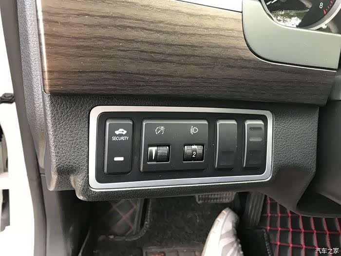驾驶室左边开关,第一个,车子防盗警示灯,第二个仪表亮度和车内氛围灯亮度调整,第3个是大灯高度调节。