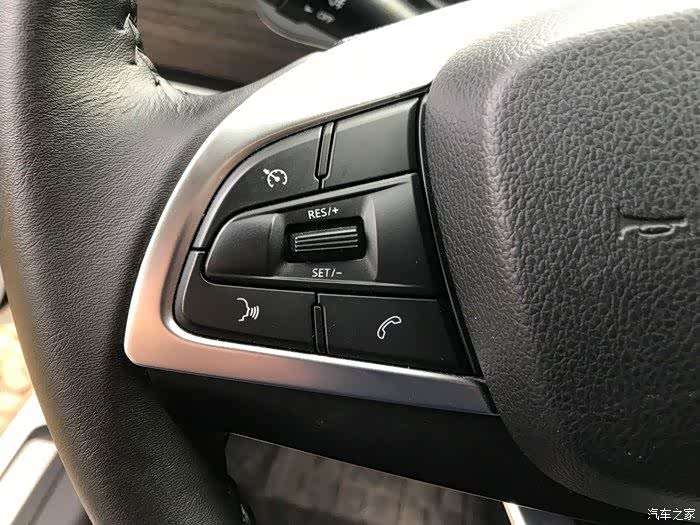 多功能方向盘,左上角时钟标志,定速巡航,按下好在按一下SET-启动定速巡航,左下角语音功能,右下角电话。简单明了