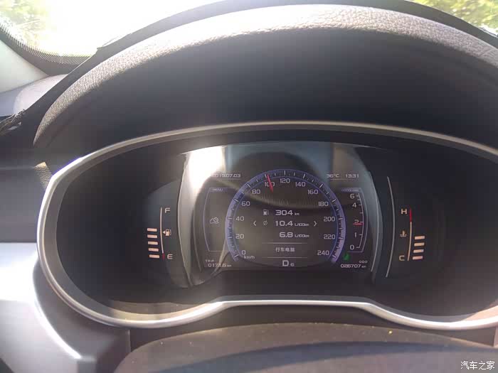 天天跑市区,开空调,仪表显示油耗也从9.3慢慢升到了10.4,终于可以跑一段国道了,过百之后显示油耗是6.8,感觉还是很不错的。(行车安全很重要,这一张图是副驾朋友帮忙拍的,看的也不是很清楚,见谅见谅)